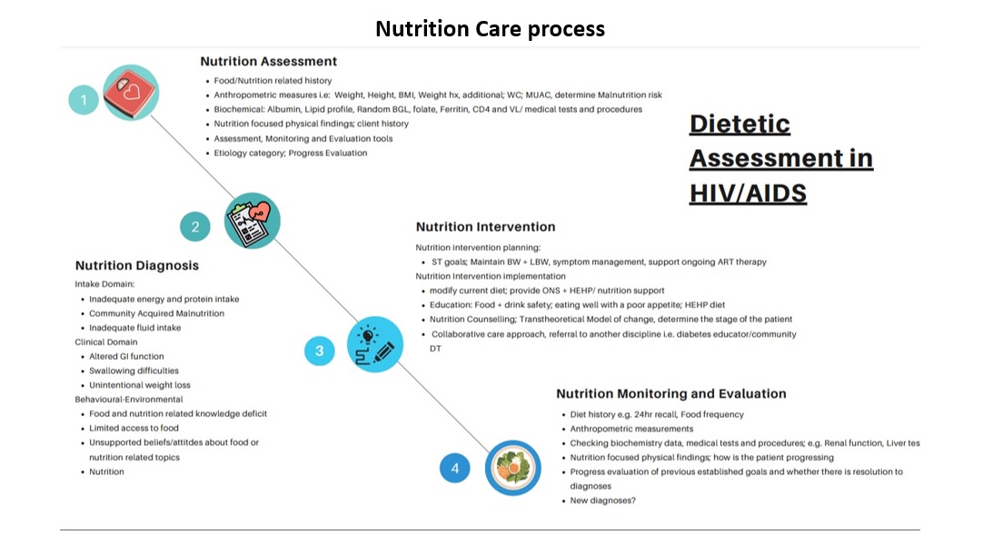 The nutritional management of HIV may be considered complex, as there is a clear established relationship between HIV and malnutrition. Malnutrition contributes to weight loss, nutritional deficiencies, muscle, and fat wasting, further lowering the immune system, consequently resulting in HIV progression leading to increased metabolic demands and nutritional requirements.20 This is further complicated with food insecurity.21