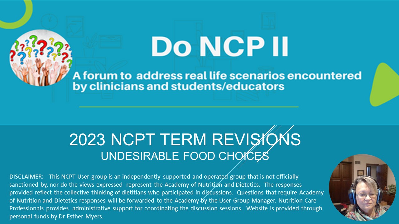 Use of older Nutrition Diagnosis - Undesirable Food Choices